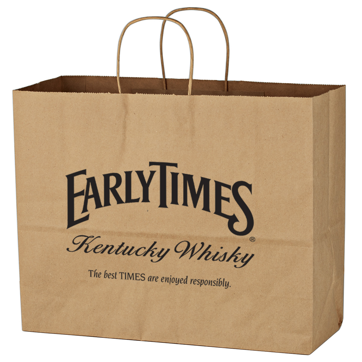 Made Of Kraft Paper. Serrated Top. 6" Gusset. Reusable. Recyclable. Matching Kraft Twisted-Paper Handles.