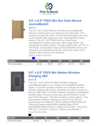 "The 5.5" x 8.5" FSC® Mix Walton Wireless Charging JournalBook® allows you to charge your smartphone without cables. To use this specialty notebook as a charger, the front wireless charging pad must be connected to a power source via Micro to USB cable. The Walton Wireless Charging JournalBook® includes elastic closure and pen loop, plus 80 sheets of cream lined FSC® Mix paper. This item includes a 1-piece gift box.