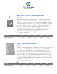 The 3 in 1 Adventure Blanket is the best companion on any type of adventure or travel. Unfolded the blanket is oversized at 60" by 70" with a warm fleece lining and a waterproof exterior. This blanket also functions as a poncho. Simply pull out the hood from the pocket compartment and tighten the drawstrings to fit. The blanket can also be used as a sleeping bag by snapping up the front and bottom of the blanket together. Blanket measures 20" x 8.5" folded. Free embroidery run charges on up to 10,000 stitches. This blanket is spot clean only.